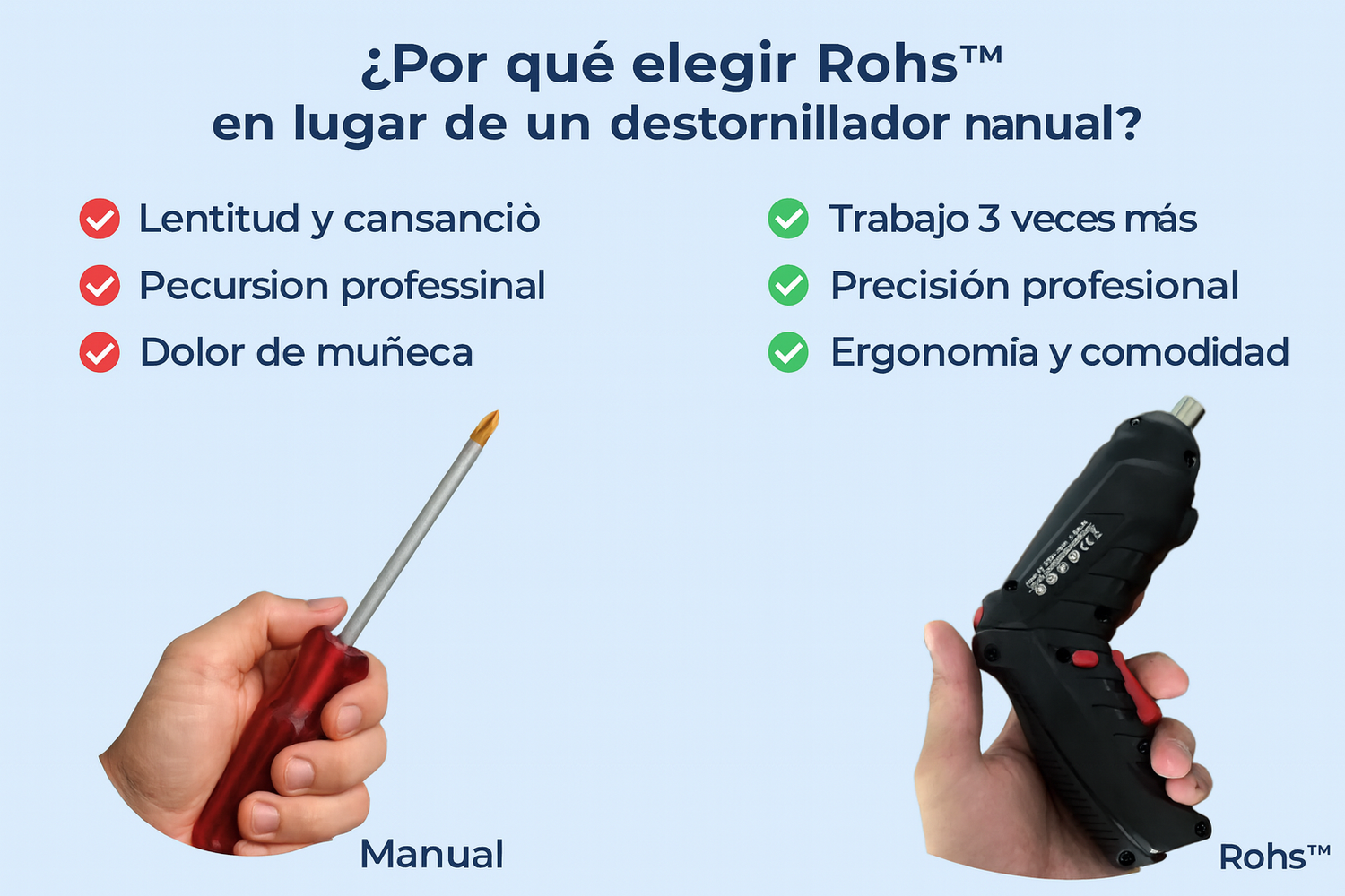 Con el Destornillador Eléctrico Rohs™, cada tarea se vuelve sencilla y profesional.