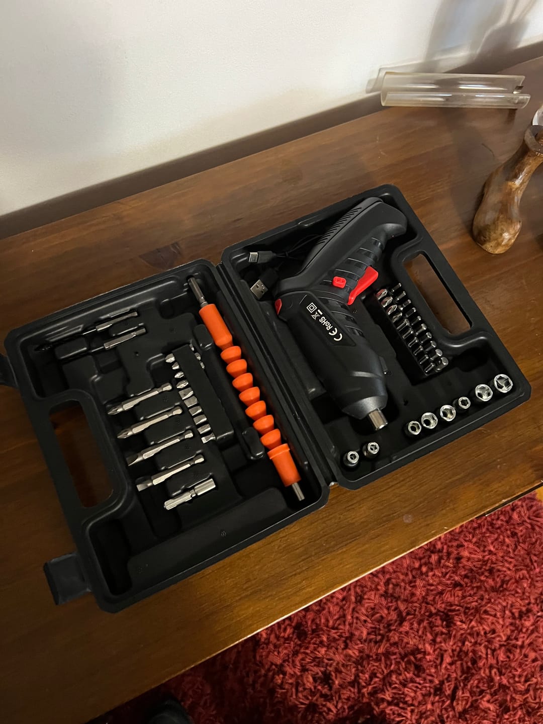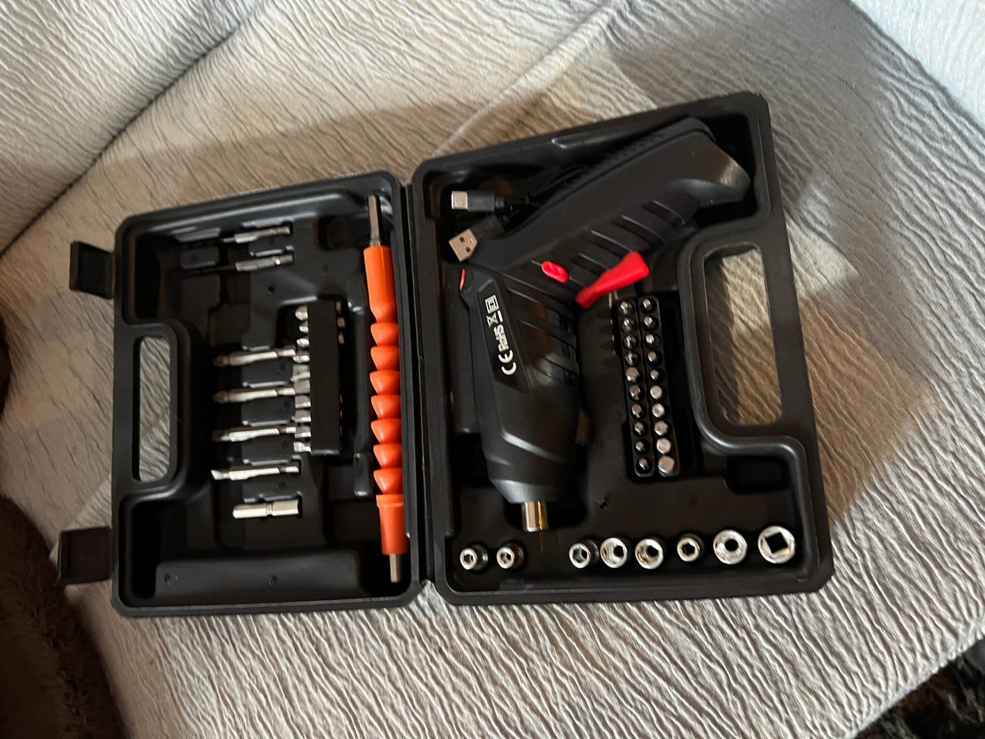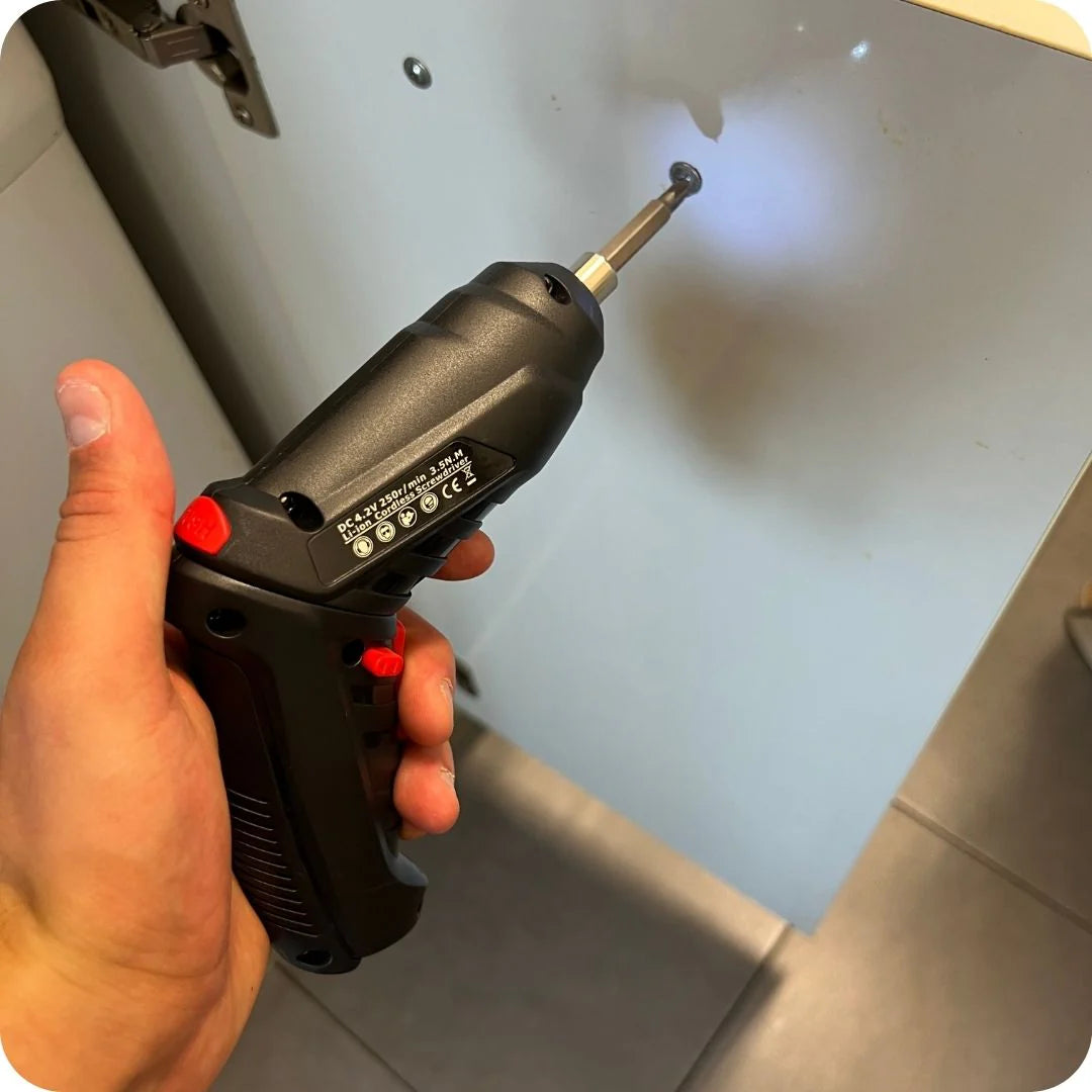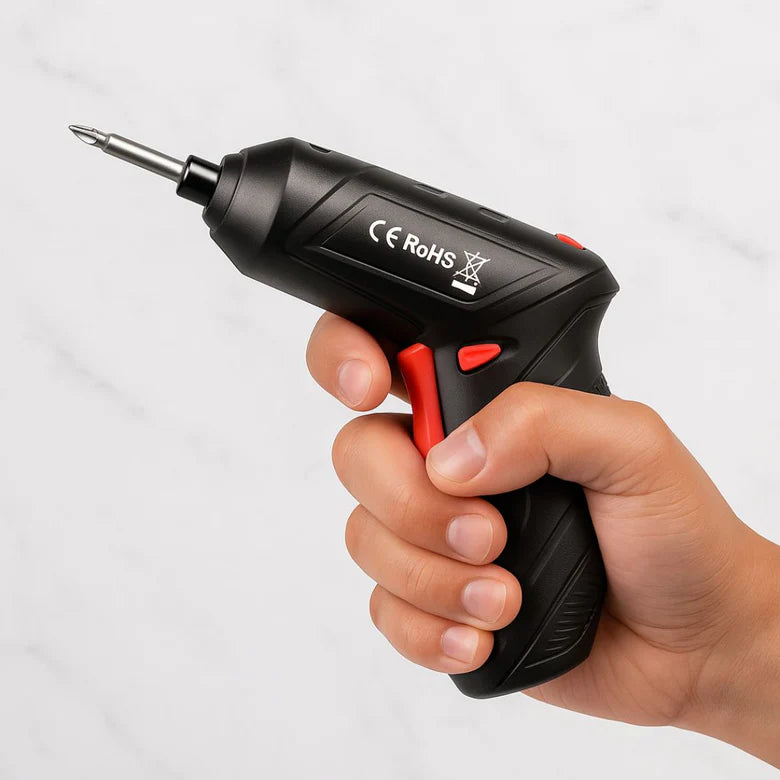1️⃣ Carga el destornillador con el cable incluido.